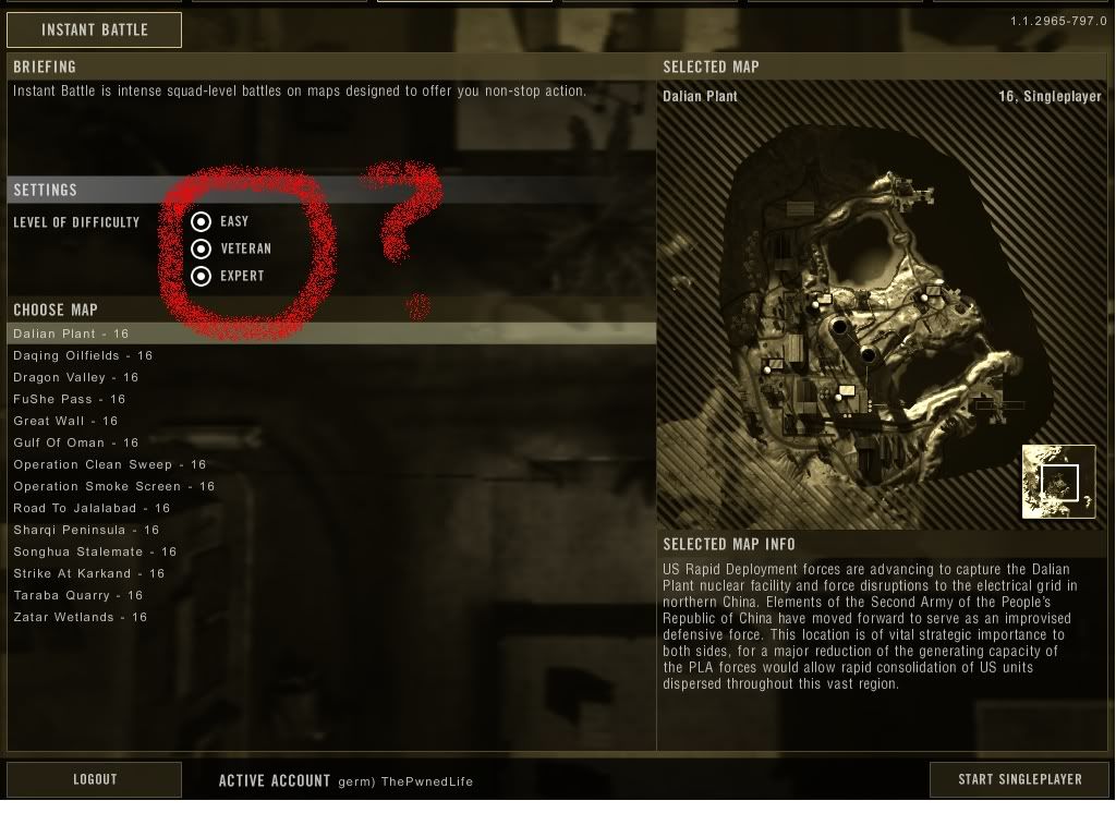 Single Player Menu, Notice all difficulties are checked. The enemy AI sucks.