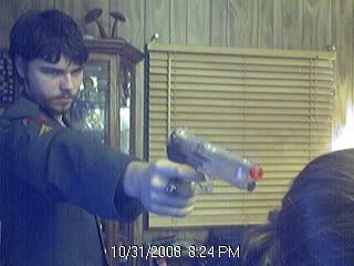 Heh... I'm pointing it at the back of my sister's head... I wish the gun still worked and that I was still in possession of it... But I don't really want possession of it as badly as I want that jacket and ring, both of which belonged to my dad, from his military days.