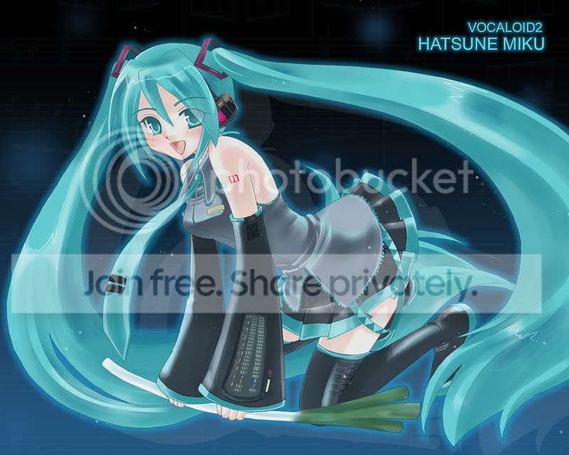 Miku Hatsune is from a PC program called Vocaloid2 which is a voice synthesizer.
